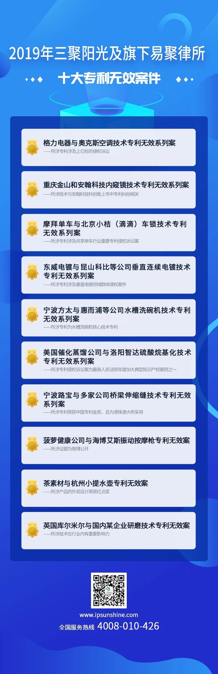 三聚陽光發(fā)布2019年十大專利無效案件