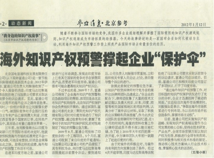 國(guó)電富通針對(duì)印度海外預(yù)警及訴訟——海外預(yù)警工作在當(dāng)年完成之后,隨即經(jīng)受了實(shí)戰(zhàn)檢驗(yàn)