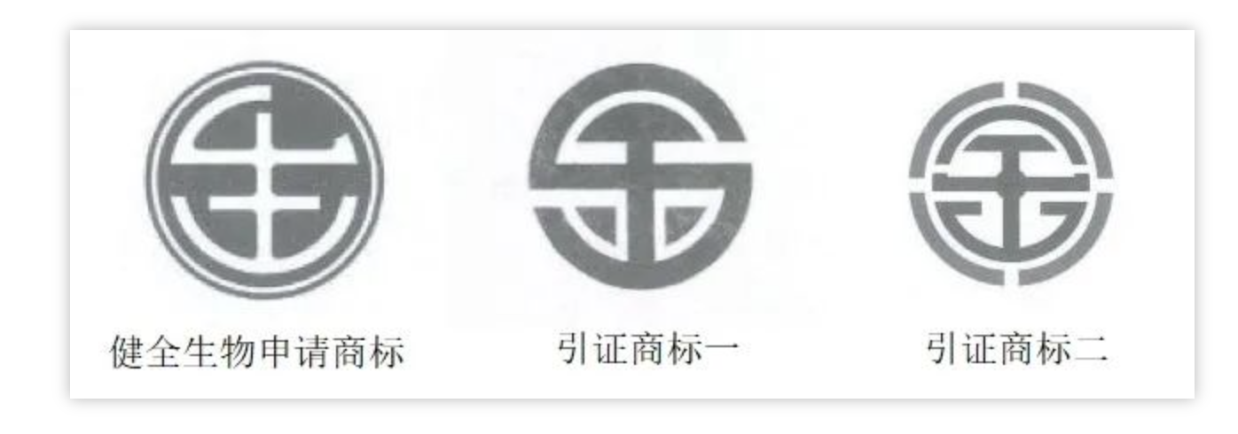 此前,國家知識產(chǎn)權(quán)局以健全生物申請注冊的商標(biāo)構(gòu)成“2014年商標(biāo)法”第三十條所指情形為由,駁回了該商標(biāo)在復(fù)審商品上的注冊申請。北京知識產(chǎn)權(quán)法院以健全生物申請的商標(biāo)與引證商標(biāo)一、二構(gòu)成在相同或類似商品上的近似商標(biāo)為由,駁回了健全公司的訴訟請求。(“2014年商標(biāo)法”第三十條 申請注冊的商標(biāo),凡不符合本法有關(guān)規(guī)定或者同他人在同一種商品或者類似商品上已經(jīng)注冊的或者初步審定的商標(biāo)相同或者近似的,由商標(biāo)局駁回申請,不予公告。)