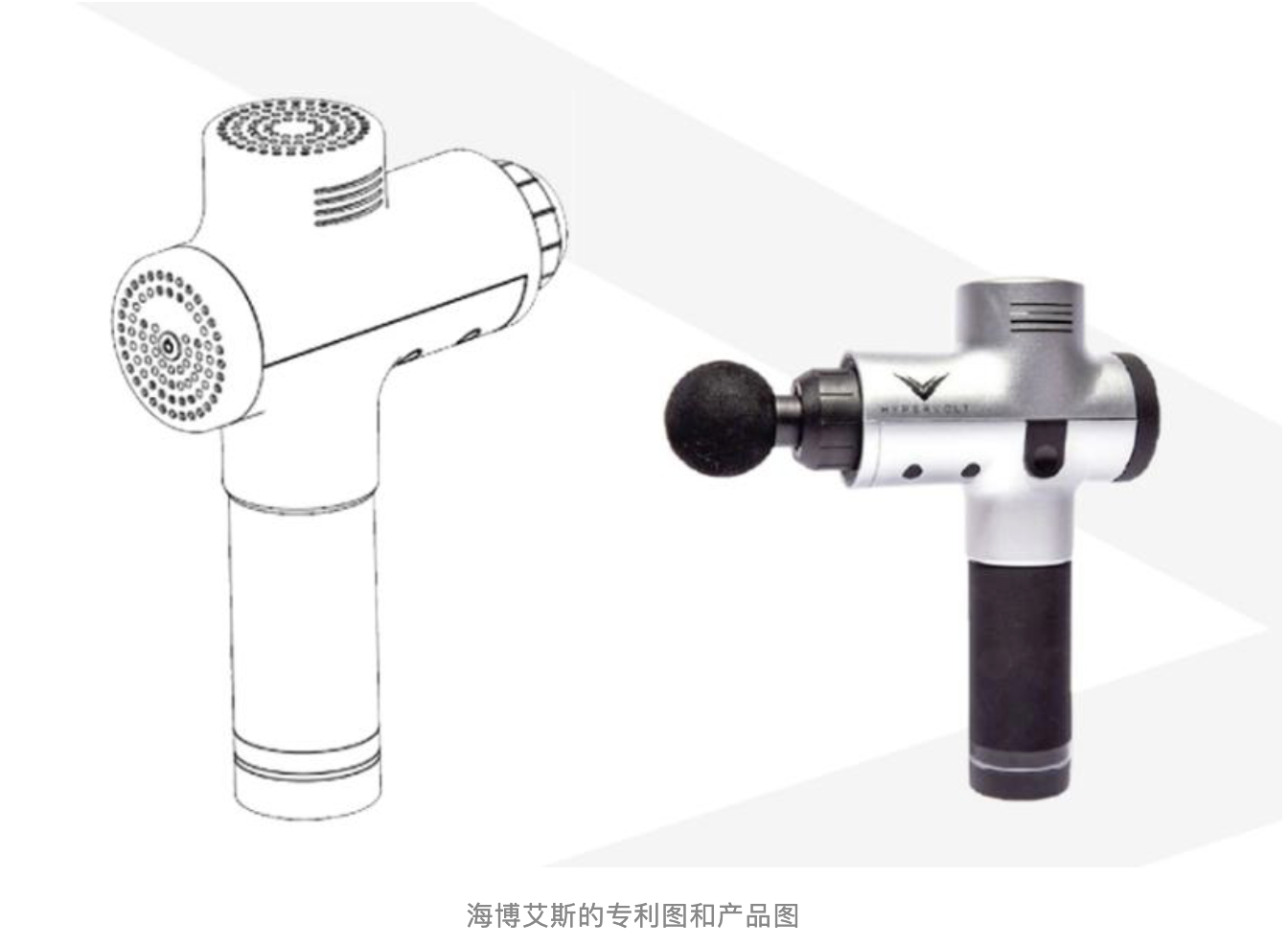 視頻中只有幾秒的畫面,并且只能看到筋膜槍的一個側(cè)面,握把等處還被使用者的手部遮擋。對此補強證據(jù)為:新浪NBA官方微博和專利權(quán)人的微博都宣傳了“詹姆斯同款Hypervolt筋膜槍”,并配有錄像所示場景的gif圖以及按摩槍的立體圖。盡管視頻中受拍攝角度限制,未顯示按摩槍的全部設(shè)計細節(jié),但是在“新浪NBA官方微博”和“Hyperice官方微博”均明確記載比賽現(xiàn)場和微博所示按摩槍為同款的情況下,微博中所示按摩槍立體圖中的設(shè)計特征可以用于表明比賽現(xiàn)場公開的按摩槍的具體設(shè)計特征。
