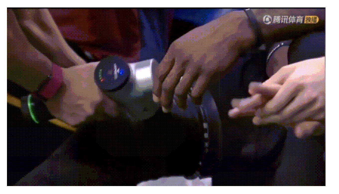 收到傳票后,蘇州菠蘿健康科技有限公司委托三聚陽光和易聚律所應(yīng)訴并提起無效宣告請求。然而經(jīng)過多日檢索,搜遍了各數(shù)據(jù)庫都未能找到2018年2月22日之前公開的類似設(shè)計。律師們正在深入檢索之際,一位NBA球迷提供了線索,稱曾在2018年2月的NBA比賽轉(zhuǎn)播中,看到過詹姆斯用十字形的筋膜槍放松。群眾的眼睛是雪亮的,在某視頻網(wǎng)站找到了這段錄像:2018年2月12日的NBA常規(guī)賽中,果然有球隊工作人員使用一款筋膜槍為詹姆斯按摩膝蓋的鏡頭。