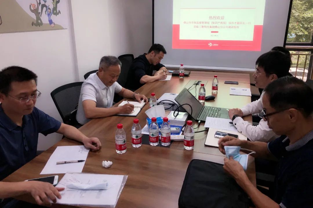 8月11日上午,佛山市市場監(jiān)督管理局(知識產權局)副局長谷辦才及知識產權促進科科長賴志軍、潘科堯一行蒞臨三聚陽光佛山分公司調研并指導工作,認真聽取了佛山分公司現(xiàn)階段工作開展情況工作匯報。