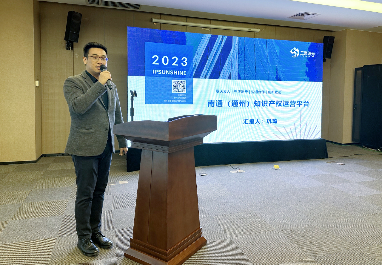 三聚陽(yáng)光華東區(qū)總經(jīng)理鞏琦為大家介紹了南通(通州)知識(shí)產(chǎn)權(quán)運(yùn)營(yíng)平臺(tái),細(xì)致講解了平臺(tái)成立的背景以及平臺(tái)的功能和使命。